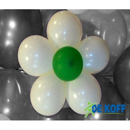 Standaard word de ballonnenbloem gevormd met ballonnen van 35 cm. Vind u dit te groot of te klein? Kies dan voor kleinere ballonnen of juist voor reuzenballonnen. Vraag ons hiervoor naar de mogelijkheden