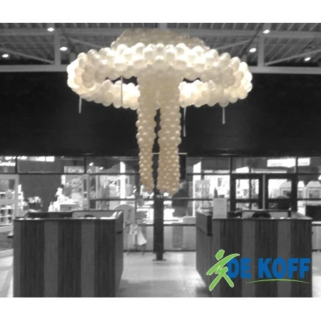 “Wauw! Wat hangt daar voor decoratie”. Dat zullen de reacties zijn bij het zien van de gigantische kroonluchter gevormd door honderden ballonnen!