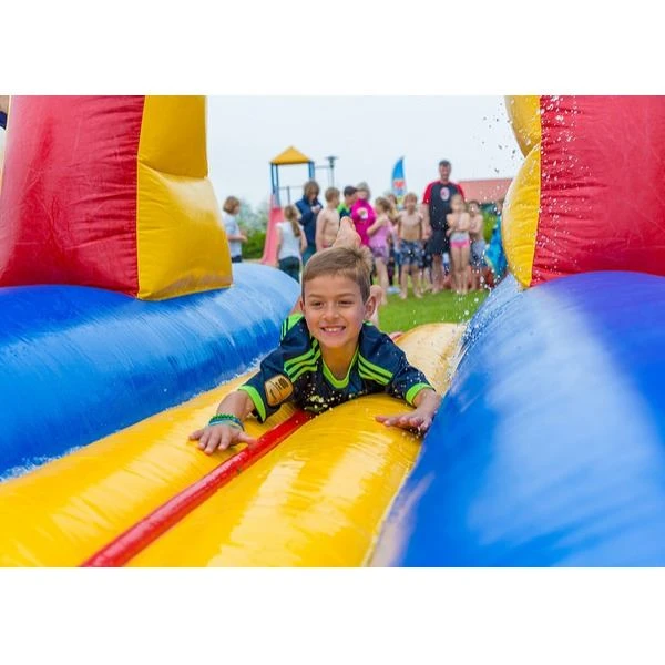 Op zoek naar dé publiekstrekker voor jouw zomerse evenement? Met deze 14 meter lange buikglijbaan met eindbad haal je gegarandeerd een hit in huis! Of het nu gaat om een zeskamp, vrijgezellenfeest, sportdag of campingactiviteit – buikschuiven blijft een spektakel voor jong en oud. Deze waterattractie zorgt voor actie, verkoeling én veel gelach, zowel voor deelnemers als toeschouwers.