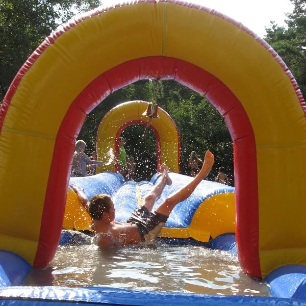 Twee personen kunnen tegelijk racen over de glijbaan richting het verfrissende zwembad aan het einde. Een topactiviteit voor zonnige dagen!