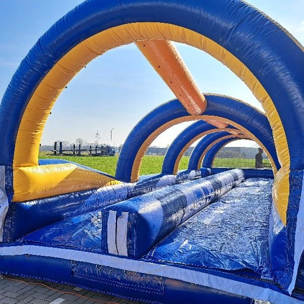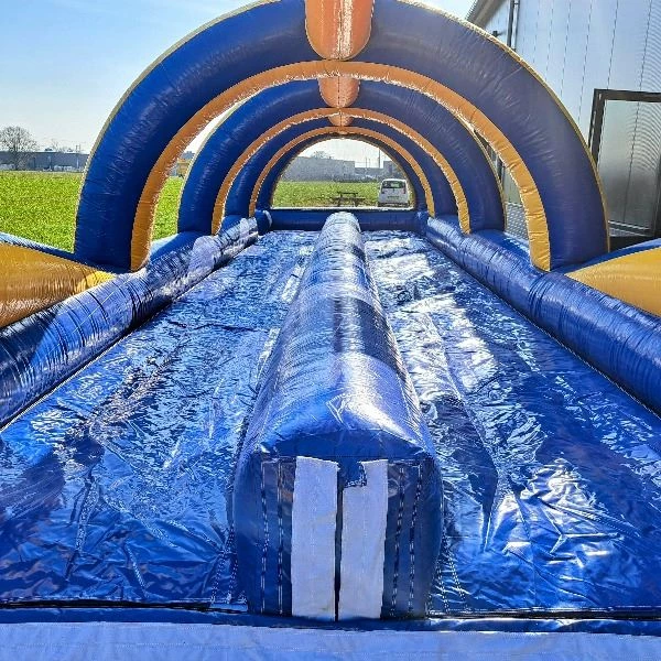 Beleef gegarandeerd waterpret met deze 12 meter lange buikglijbaan! Perfect voor een zomers feestje, zeskamp, vrijgezellenfeest of een dagje op de camping. Twee deelnemers kunnen tegelijkertijd over de baan glijden, wat zorgt voor actie, snelheid én hilariteit. Of je nu jong of oud bent: deze waterattractie is een gegarandeerde hit!