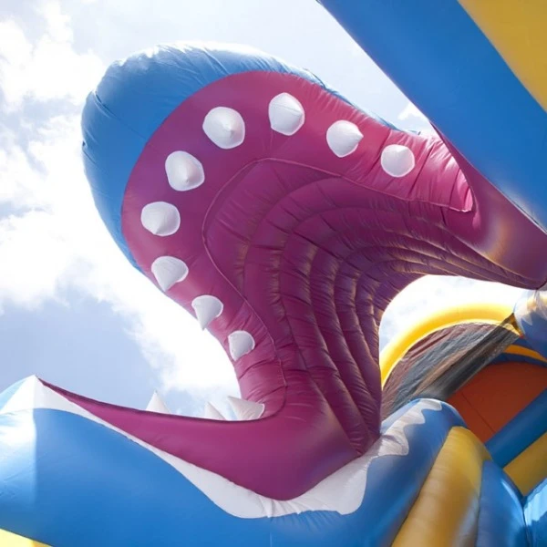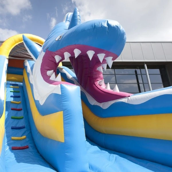 Een super gave glijbaan in thema Haai! De glijbaan maakt het helemaal af. Het kussen is vormgegeven in opvallende kleuren. Luchtkussen Het luchtkussen is geschikt voor zowel kleine als grote kinderen.