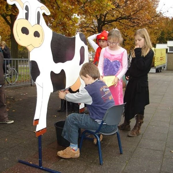 De koe kan ingezet worden als spelelement; wie melkt als snelst een beker vol? Of om gewoon te oefenen met melken.