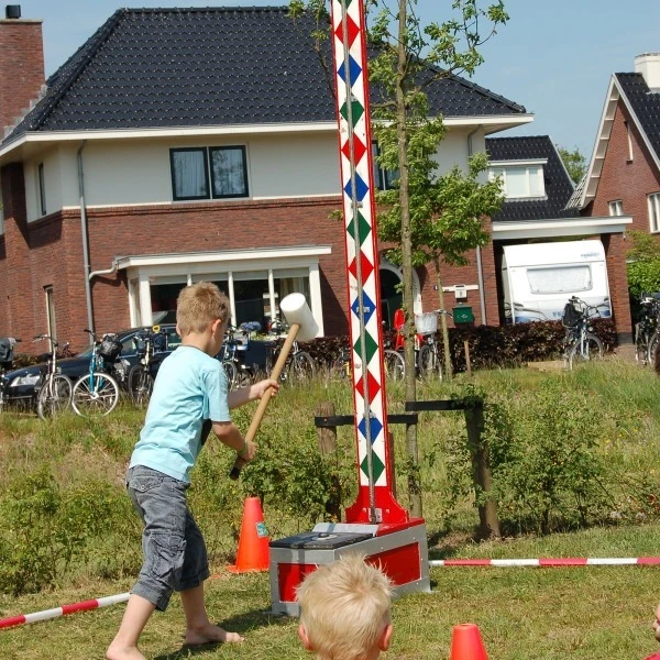 Een echte eye-cather is deze kinder kop van jut van wel 3 meter hoog. De kinderen zien deze al van verre en willen hier maar al te graag een keer op slaan. De kop van jut is een graag geziene attractie bij schoolfeesten, buurtfeest of ieder ander feest waar kinderen vermaakt moeten worden!