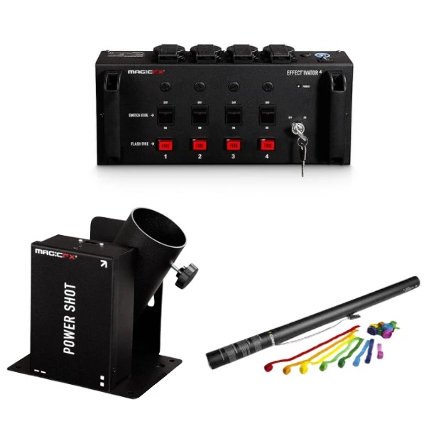 Dat kan met deze confetti machine voor 1 shot, inclusief alle benodigdheden om deze te laten vuren.