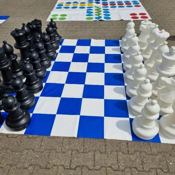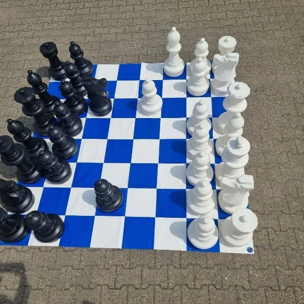 Schaken is het spel van aanvallen en verdedigen, met deze grote variant is het zelfs leuk voor de toeschouwers. De stukken zijn 30x20 cm