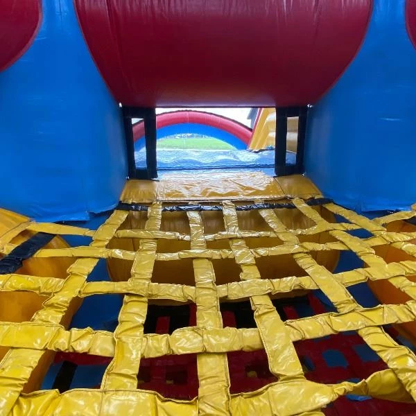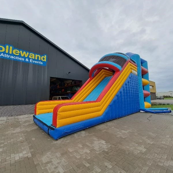 Succes gegarandeerd met het huren van deze mega spidertoren. Kinderen en volwassenen kunnen via de netten naar boven klimmen zonder bang te hoeven zijn dat ze naar beneden vallen. Door het veilige systeem van de elastieken, kan je niet naar beneden vallen tijdens het klimmen. De beloning voor de klim is een enorme glijbaan naar beneden. Het huren van deze unieke attractie is een echte eyecatcher op jouw evenement!