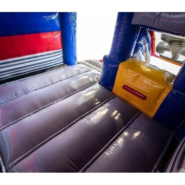 Dit luchtkussen is een zeer aantrekkelijk springkussen. Populair door zijn vele speelobjecten op het springvlak waar kinderen op, over of omheen kunnen springen en spelen. Geschikt springkussen om te huren voor een buurtfeest, open dag, kinderfeest of bedrijfsfeest. Het springkussen is geschikt voor zowel kleine als grote kinderen en kan door zijn afmetingen gemakkelijk en snel op vele plekken worden neergezet.