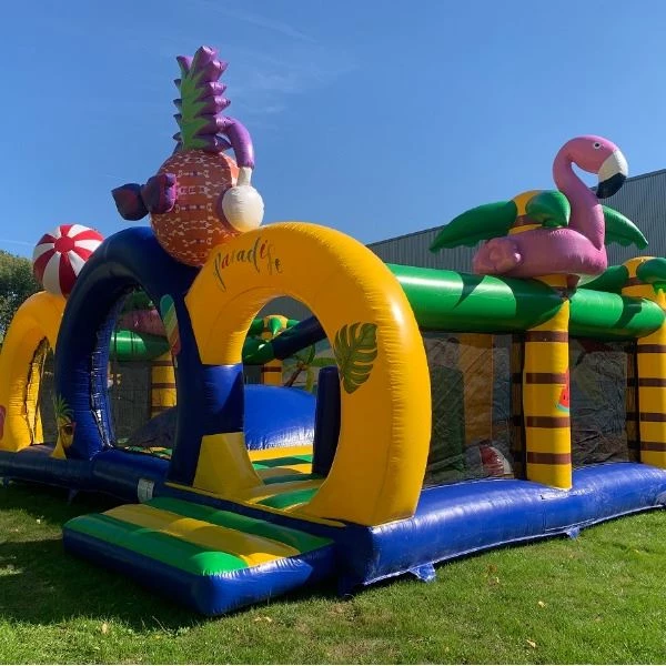 Met een royaal oppervlak biedt dit springkussen volop ruimte voor beweging en plezier. Kinderen kunnen zich zorgeloos uitleven terwijl ouders genieten van een veilig en overzichtelijk speelgebied. De vrolijke zomerse uitstraling maakt het helemaal af!