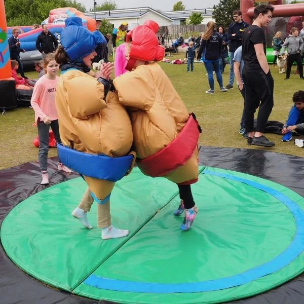 Ga de strijd aan! Kinder sumo worstelen is helemaal in. De pakken zijn van schuim en het voordeel van deze pakken zijn dat de onderkant open is. Zodat u ze heel makkelijk over het hoofd van de kinderen kunt trekken.