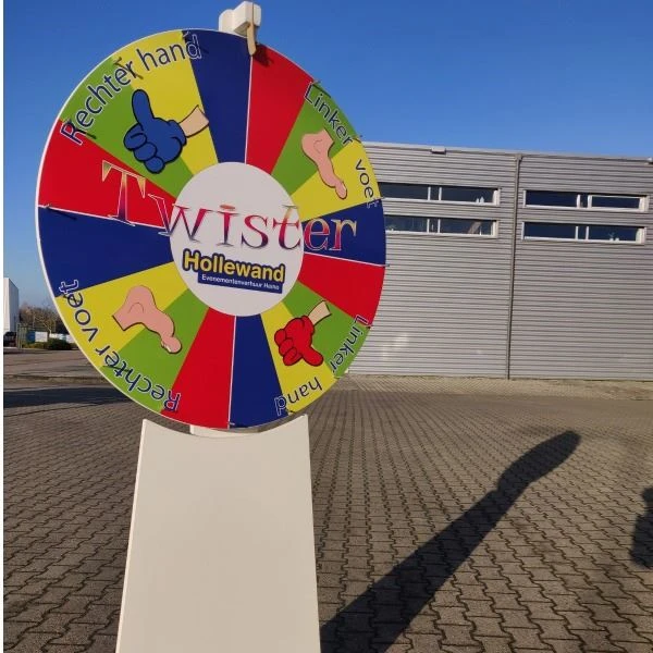 Bij de twister XXL krijg je i.p.v. een klein draaischijf, een mega draaibord van 2 meter voor extra beleving! Het rad is 2-delig.